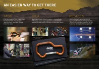 | Description | To promote Jeep as the ultimate off-road vehicle, we created Jeep-shaped alpinist carabiners with the line "There’s an easier way to get there" and had those handed out with every purchase in climbers and hikers stores. They came with an invitation card to Jeep Territory - a unique proving ground where anyone could live the Jeep experience through a test-drive. |