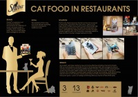 | Description | Brand. Sheba® is a premium cat food brand. Sheba’s renowned for its collection of luxury cat treats made of mussels, rabbit, shrimp and lamb. The price is 40% higher than average for cat foods. Goal. We needed to find a new and more efficient sampling channel compared to traditional ones. Solution. That is why Sheba became the first cat food to be served in restaurants. Apart from the main menu, visitors could take a look at Sheba menu and choose a free sample dish for their furred gourmand. The waiter recommended cat menu, clarifying if the visitors had a pet, and then brought sample together with a bill. Promotion campaign lasted for three months in the Kiev’s largest restaurant chain. |