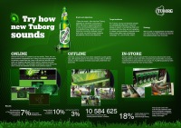 | Description | Target audience. Young, dynamic people are strategically important for Tuborg. They are always in searche of something fresh and nonstandard, that is why they are not receptive to classic communication channels which brand used within main advertising campaign (TV, OOH, metro). Strategy. We focused on engagement and decided not only to show new Tuborg, but also let the audience listen and see how it sounds. Idea. Try how new Tuborg sounds |
