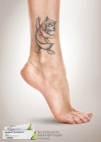 | Description | It is hard to tell the symptoms of athlete foot, but not for those too close, e.g. tattoo on an affected leg. Be it a bad smell or an unbearable itch, our heroes try to protect themselves from it with conventional means, such as holding their nose or scratching. Yet the only effective way is to treat the cause, not symptoms. Use Exoderil, get rid of a mycosis effectively! |