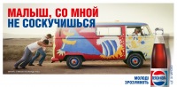 | Description | Image is dedicated to limited edition of legendary bottle from seventies. Soviet teenagers had same amount of fun as contemporary ones. And they had same popular drink - Pepsi! To show connection between generations we mixed slices of today's teenagers life with quotes from popular Soviet movies. Text on board: "Oh boy, you won’t get bored with me" ("Karlsson-on-the-Roof" cartoon) |