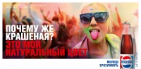 | Description | Image is dedicated to limited edition of legendary bottle from seventies. Soviet teenagers had same amount of fun as contemporary ones. And they had same popular drink - Pepsi! To show connection between generations we mixed slices of today's teenagers life with quotes from popular Soviet movies. Text on board: "Why dyed? That's my natural hair color." ("Love and doves" movie) |