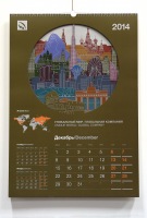 | Description | TMK is one of the leading global producers of tubulars. The company comprises 28 enterprises located in Russia, the USA, Canada, Romania, Oman, the UAE, and Kazakhstan.TMK has a diversified sales geography supplying its products to customers in more than 80 countries worldwide. Nowadays, TMK’s sales representative offices operate in 13 countries. The major task is to show the company’s scope and globality. To make up the calendar, we have taken themes of 12 main countries where TMK is present (in terms of both production sites and sales offices). TMK is an innovative company doing high-technology business in accordance with up-to-date international standards. This approach should be reflected in the process of the calendar production, its contents or production techniques. We opted for complicated die-cutting. The target group for the calendar includes the top management of partner companies, management of TMK group members, and TMK employees worldwide. Pipe, as TMK’s main product, is the main symbol used in the calendar. This symbol will be used throughout the year in all countries where TMK is present. To make the calendar, we used complicated die-cutting and mat lamination on each page. Another peculiarity of the calendar is that the pages are turned the reverse way, so that the 12 countries are assembled one by one to form a year. |