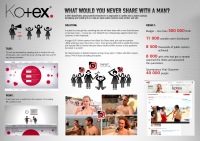 | Опис | Практически у каждой девушки есть что-то, что она никогда не доверит мужчине. Бренд стал верным соратником девушек… в житейском недоверии мужчинам! Ведь ничего так не сближает девушек, как единые взгляды на глупые поступки сильного пола. В августе 2013 года на пляжах Черного моря журналистки спрашивали у девушек один вопрос: что они бы никогда не доверили мужчинам. Каждая девушка получила подарок от Kotex: сэмпл и приглашение на Youtube канал, где через 1 месяц появятся ответы мужчин на высказанные претензии. Все собранные недоверия распределились по 16 основным темам. 5 роликов с ответами мужчин привели на сайт 74% девушек, участвовавших в пляжном сэмплинге. |
