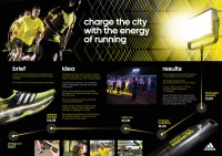 | Опис | В 2013 году adidas представил беговые кроссовки с уникальной технологией boost, которая возвращает энергию бегунам. Нашей задачей было продемонстрировать это преимущество. Мы поставили цель создать уникальные опыт среди бегунов, который подчеркнет технологию, привлечь бегунов и лидеров мнений к активностям adidas, увеличить знание бренда, и позиционировать adidas как бренд, который превращает бег из изнуряющей тренировки в полезную активность. Нашей целевой аудиторией были 2 абсолютно противоположные группы: бегуны и те, кто не хотят участвовать в беговых активностях, т.к. думают, что это тяжело и скучно. Также сложностью являлся тот факт, что в России бренд adidas воспринимается как бренд для профессиональных спортсменов, а не для ежедневных занятий спортом. Мы подумали, что если технология adidas boost может возвращать энергию одному бегуну, может ли она собрать энергию множества бегунов и направить ее на одно полезное дело? Чтобы ответить на этот вопрос, мы создали проект «Заряди город энергией бега». Как только мы озвучили большую и важную идею, люди стали участвовать в забегах и тренировках на adidas runbase с мобильными генераторами без дополнительного медиа размещения. Кампания «Заряди город энергией бега» охватила 4 московских забега и ежедневные тренировки на adidas runbase в ОК «Лужники». На всех мероприятиях бегунам раздавали мобильные генераторы, которые превращают кинетическую энергию в электричество. Вся собранная энергия хранилась в специальных батареях на adidas runbase. В финале энергия была доставлена в городе Протвино на стадион, который не был освещен с 1984 года. Присоединив батареи к LED лампам, adidas осветил стадион и подарил местным жителям настоящий спортивный праздник. Кампания получила широкий отклик в социальных сетях. 125 статей без медийного бюджета. 5 000 упоминаний в социальных сетях. PR покрытие достигло 1 275 211 257 контактов. Траффик в магазинах увеличился на 0,70% во время кампании. 250 участников с мобильными генераторами в забегах. 110 000 уникальных посетителей сайта adidas-running.ru. 21 000 бренидированных хэштегов. |