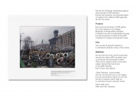 | Опис | Ми – українська рекламна агенція, що є членом міжнародної мережі WPI. Протягом революції взимку 2014, ми отримували багато листів підтримки від агенцій членів WPI з усього світу. Щороку усі члени сітки збираються на велику конференцію у Лас Вегасі. Через складну ситуацію в Україні делегація від нашої агенції не змогла приїхати. Але ми дуже хотіли подякувати всім, хто підтримав нас листами у складні хвилини революції. Отже, ми взяли слова та фрази з листів, що зустрічалися найчастіше і “побудували” з них барикади. Після, ми їх сфотографували, фото надрукували і відправили у Лас Вегас. Кожне фото було підписане: «Шановні партнери, на жаль, ми не можемо бути з вами у Лас Вегасі, але ми б хотіли подякувати вам за слова підтримки, які допомогли нам вистояти у складні часи. Скоро побачимось. З любов’ю з Києва.» |