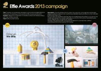 | Опис | В нужное время и в нужном месте стоит «на минутку» стать взрослым, выполнить серьезную работу, добиться весомых результатов и снова предаться своей любимой забаве и милым сердцу игрушкам. Концепцию визуализировано с помощью мобиля над детской кроваткой. Игрушки на мобиле – аллегорично сравненных с младенцами. Эта идея развернулась на 360° и воплотилась в ТВ-роликах, наружной рекламе, итернет-баннерах и ДМ-рассылке. |