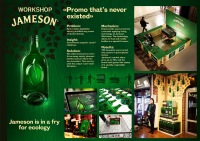 | Опис | Проблема: Законодательство Республики Беларусь строго запрещает любую промо активность алкогольных брендов. Инсайт: Государство и общество поддерживают «зеленые» инициативы. Решение: Мы попросили потребителей не выбрасывать пустые бутылки Jameson. А для мотивации – превратили их в памятные эко сувениры. Мы создали уникальный «юзеро-модифицированный мусор». Механика: Пустая бутылка становилась сувениром благодаря технологии фьюзинг в Мастерской Jameson. Эта технология позволяет плавить и модифицировать бутылки в специальной печи. Результаты: 735 участников превратили пустые бутылки Jameson в рекламные принты в своих интерьерах. В целом по рынку продажи Jameson выросли на 70%, а бренд стал социально-ответственным. |