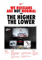 | Опис | Бренд NIKE никак не ассоциируется у потребителей в России с зимой. До начала Олимпийских игр, когда Россия находилась в самом фокусе для всего мира и общественности, мы попросили русских показать всему миру, что значит играть по-русски. |