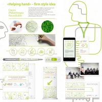 | Опис | Перед нами стояла задача разработать визуальную концепцию и внедрить ее в каждый элемент оформления 7-го круглого стола по вопросам благотворительности. Дизайн-концепция должна была символизировать объединение усилий бизнеса ради социальных благ, эволюцию филантропии, выразить влияние бизнеса и капитала на благотворительность и социальное обеспечение, а также новый взгляд на использование и распределение прибыли. Такой концепцией стала «Рука помощи». Благотворительность зиждется на желании помогать ближнему. Чем больше рук, протянутых для помощи, тем больше шансов эту помощь получить у тех, кто в ней действительно нуждается. Одна рука – это так мало, когда в помощи нуждаются миллионы. Но если она первая – ее вклад в общее дело бесценен. Первая рука, поднятая вверх, – готовность помогать. Руки, сплетенные в рукопожатии, – символ согласия. Множество рук создает сеть благотворительности, которая не имеет границ. |