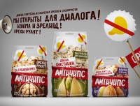 | Опис | Основная целевая аудитория орехов и сухофруктов «Античипс» - дети и подростки, известные своей любовью к чипсам, а также протестным настроением. Поэтому перед Ruport стояла задача: разработать такое оформление продукта, которое склонило бы конечного потребителя к покупке полезных орехов, а не вредных снеков. Используя знание детской психологии, мы разработали упаковку, символизирующую протест (в данном случае, протест против чипсов). Обозначение содержимого упаковки стилизовано как лозунг. Таким образом, дизайн, кроме утилитарных сбытовых целей, несет очевидную социально-педагогическую функцию. |